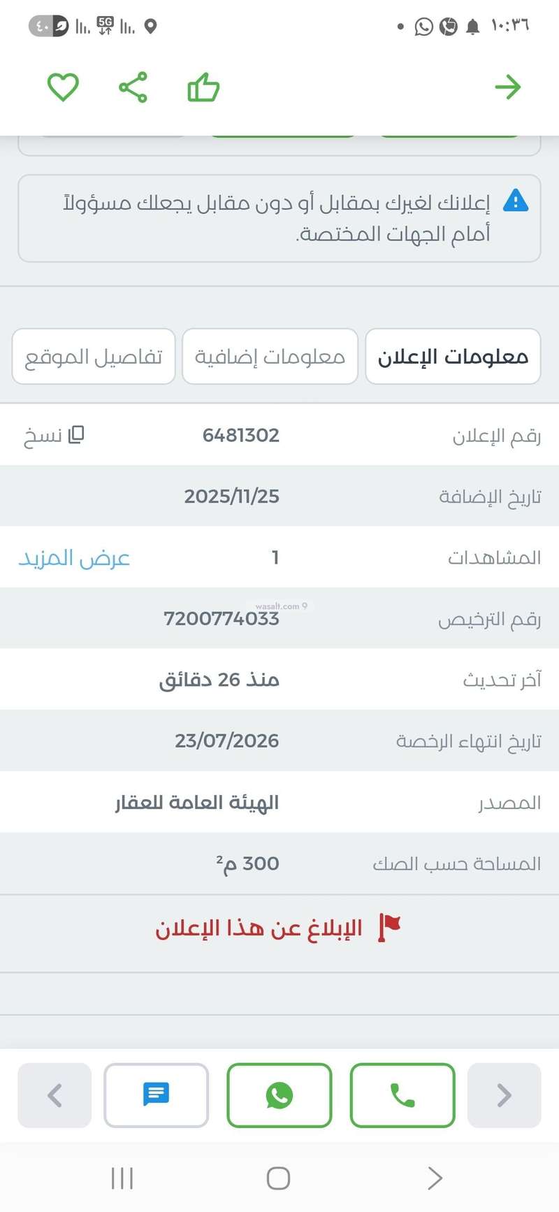 معلومات رخصة الإعلان