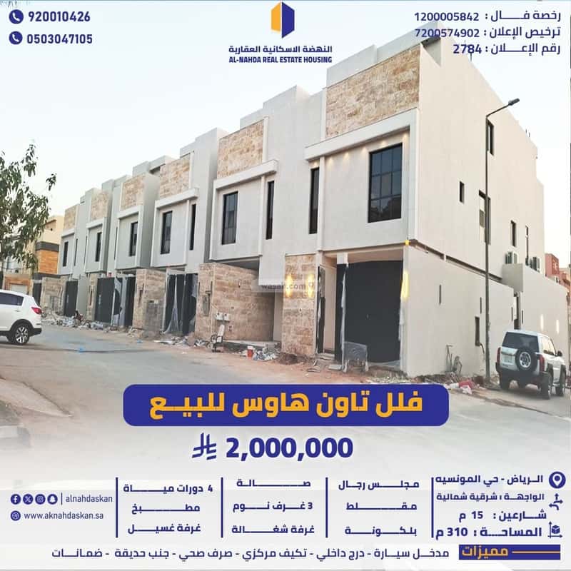 فلل تاون هاوس للبيع الرياض حي المونسية
