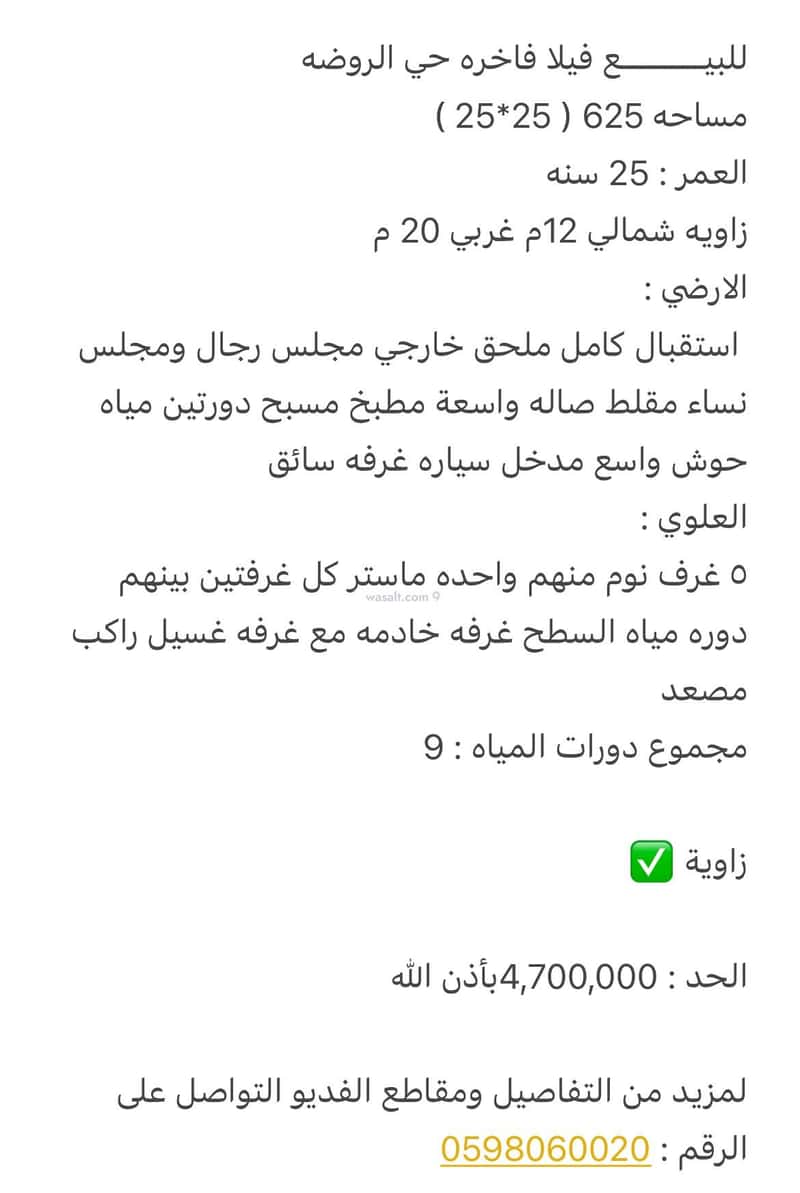 مساحة الأرض 625 متر مربع