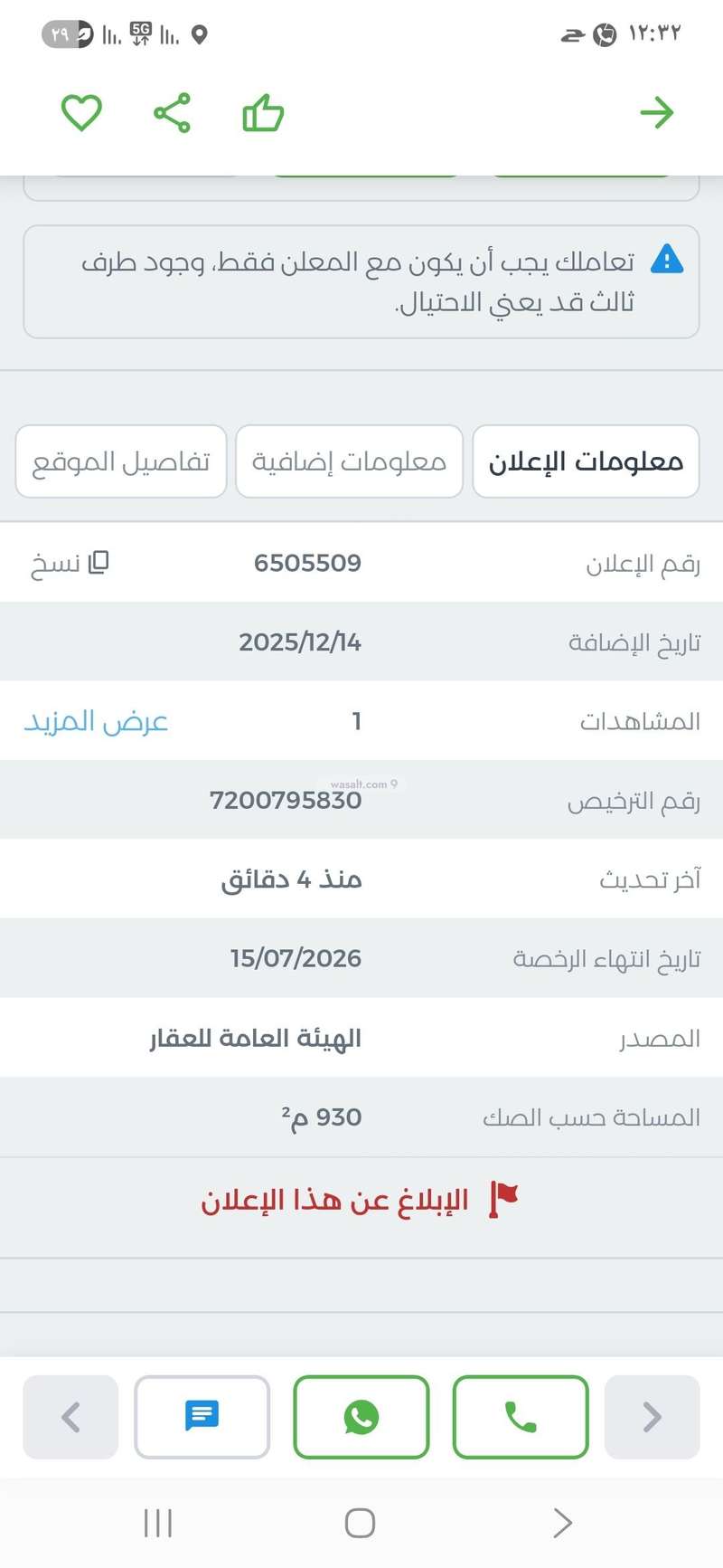 مساحة الأرض 930 متر مربع