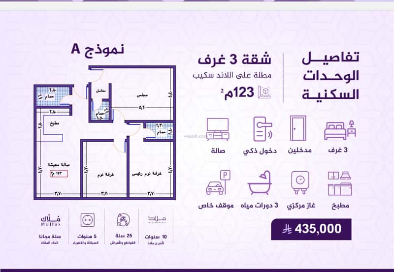 شقة 2436 متر مربع ب 3 غرف