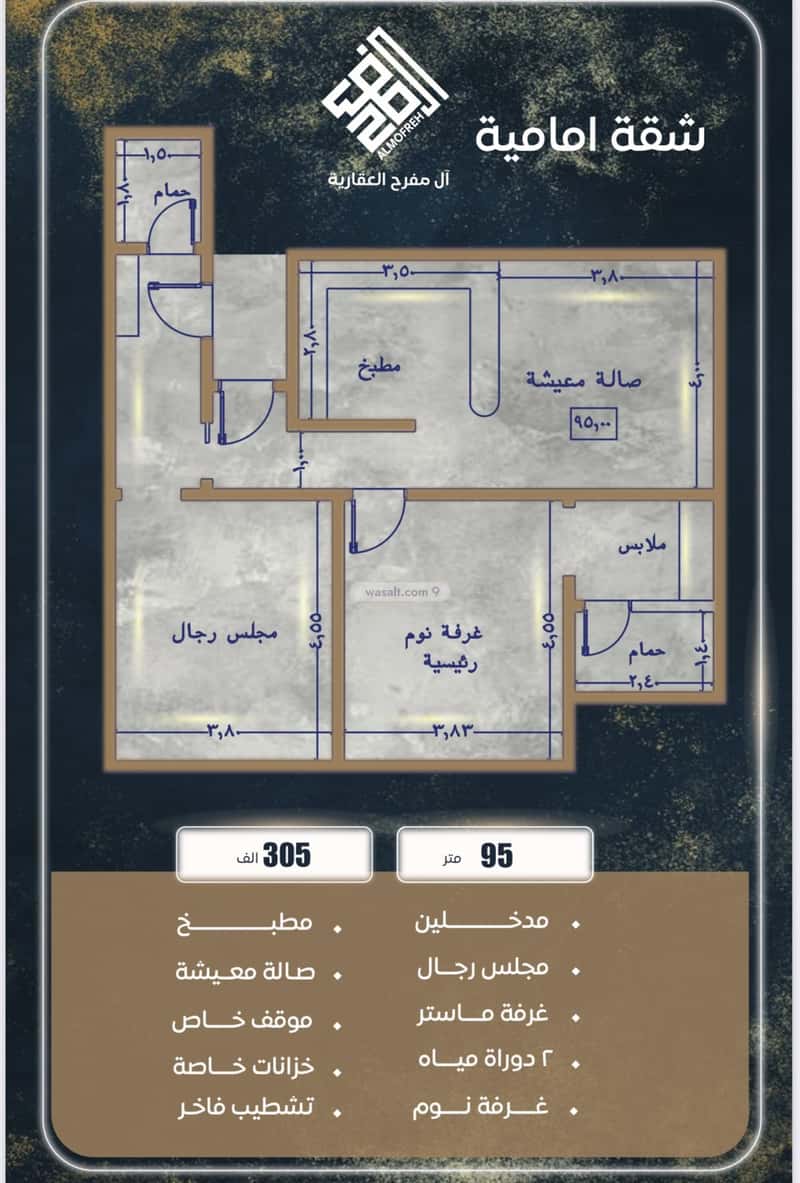 مكونة من: 5 ادوار و 3 غرف و 3 دورات مياه و 1 صالة و 1 مجلس