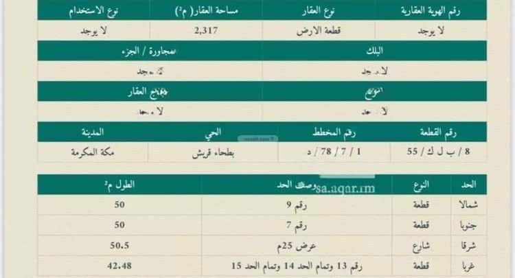 مساحة الأرض 2317 متر مربع