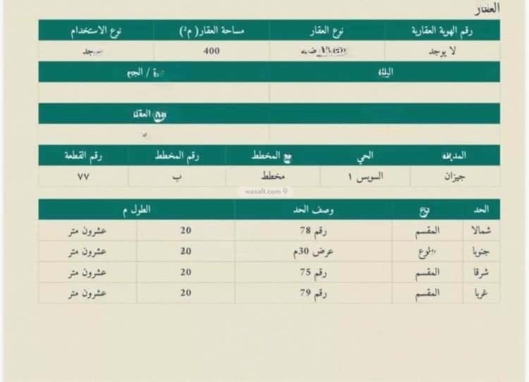 يحدها 1 شارع: جنوبية٬ بعرض 30 م