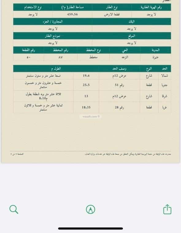 مساحة الأرض 459 متر مربع