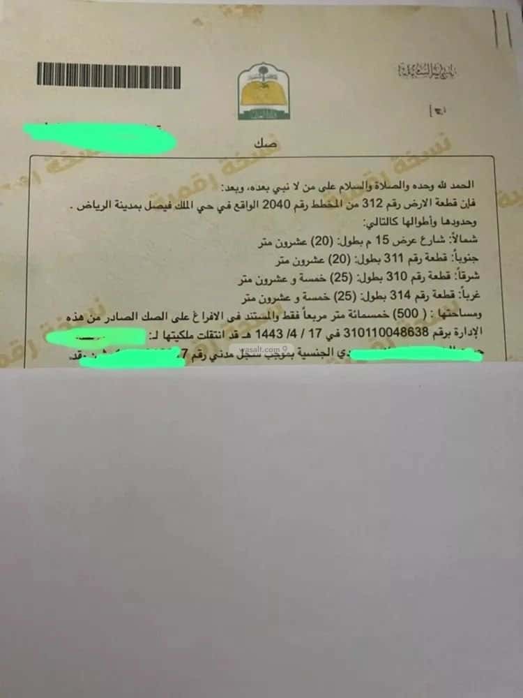 مساحة الأرض 500 متر مربع