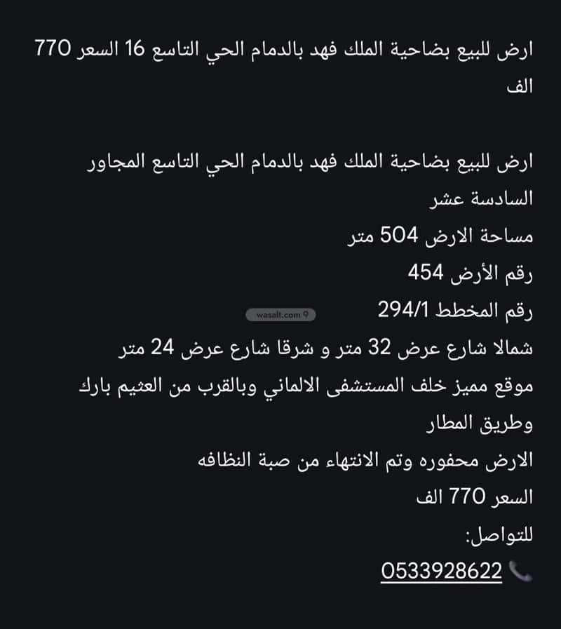 ارض للبيع بضاحية الملك فهد بالدمام الحي التاسع المجاور السادسة عشر