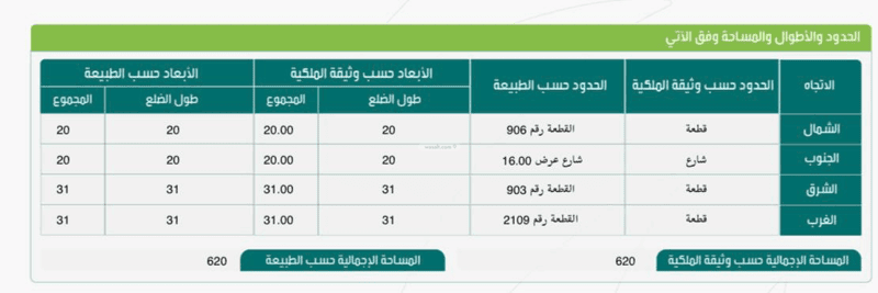مساحة الارض 620متر