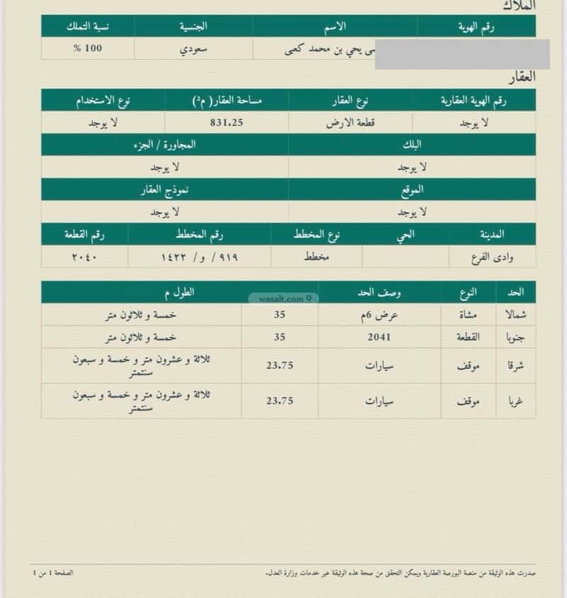 مساحة الأرض 635 متر مربع