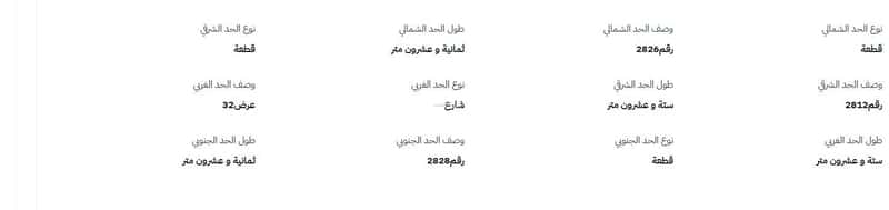 نوع الحد الغربي شارع - وصف الحد الغربي عرض32 - طول الحد الغربي ستة و عشرون متر