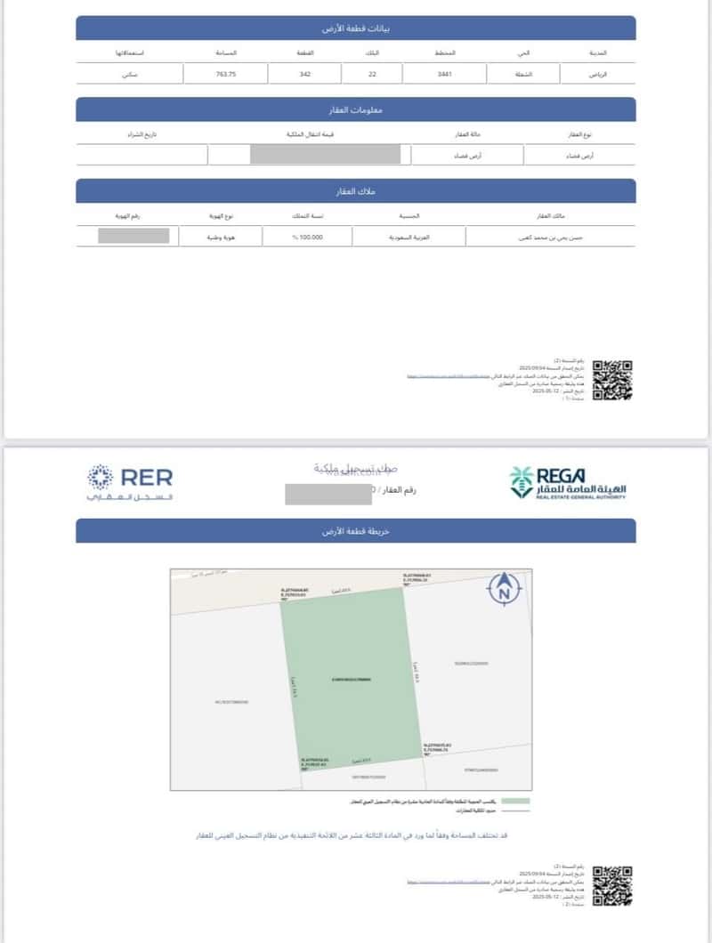 مساحة الأرض 763 متر مربع